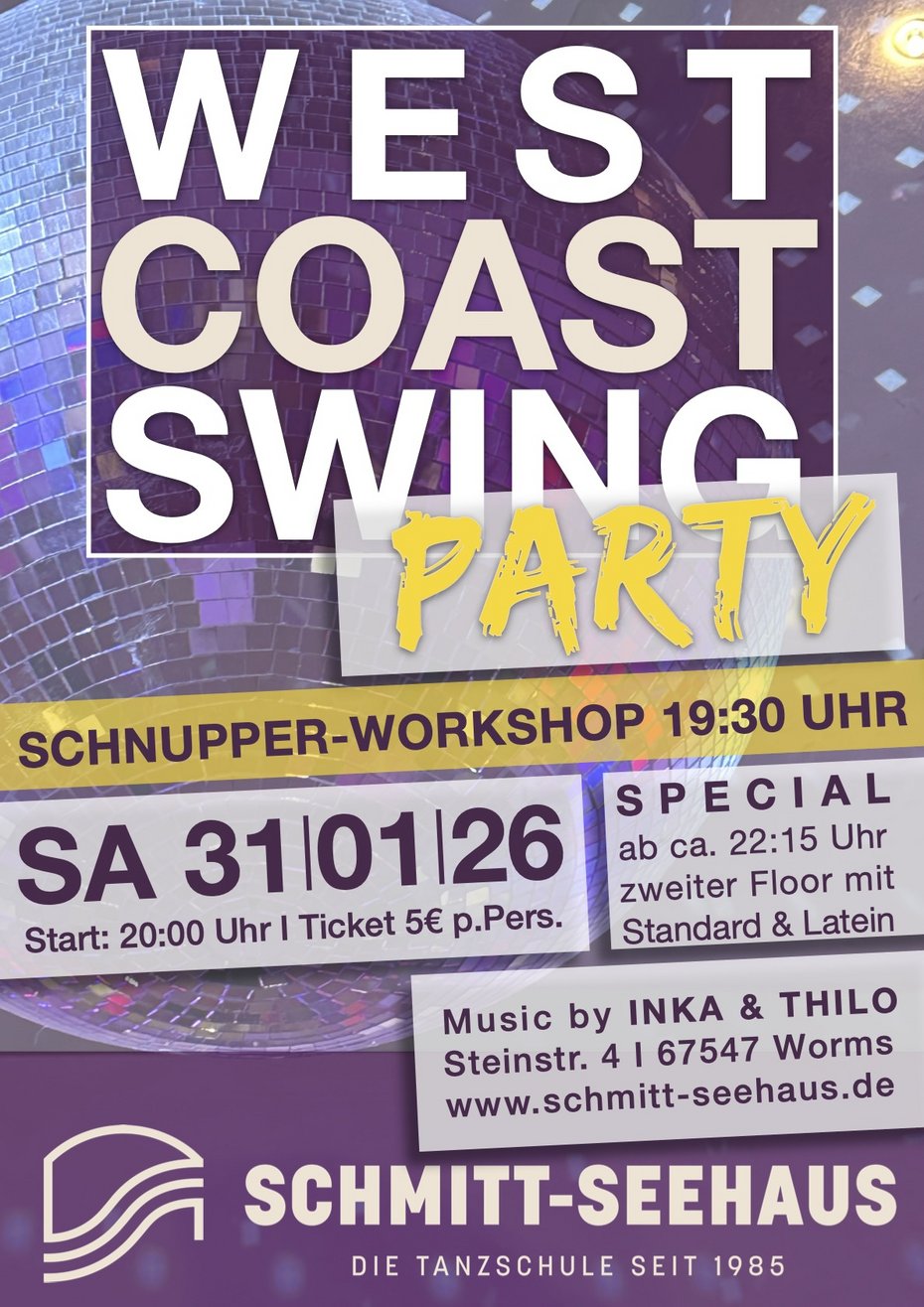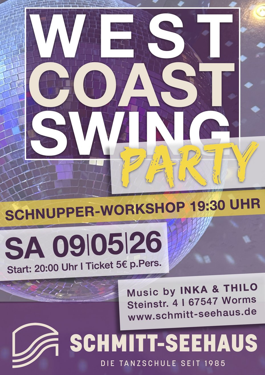 Zusätzlich bieten wir ab 19:30 Uhr einen Schnupper-Workshop, für alle die in die Welt des West-Coast-Swing schnuppern möchten.