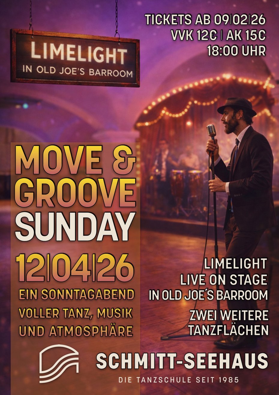 Bei Move & Groove trifft Live-Power auf beste Tanzbeats! Zwei große Tanzflächen und unsere Band "Limelight" live on Stage in "Old Joe´s Barroom". Das muss man erleben. Zwei Musiker die mit Rock´n´Roll & Blues die Menge in Schwung bringen!