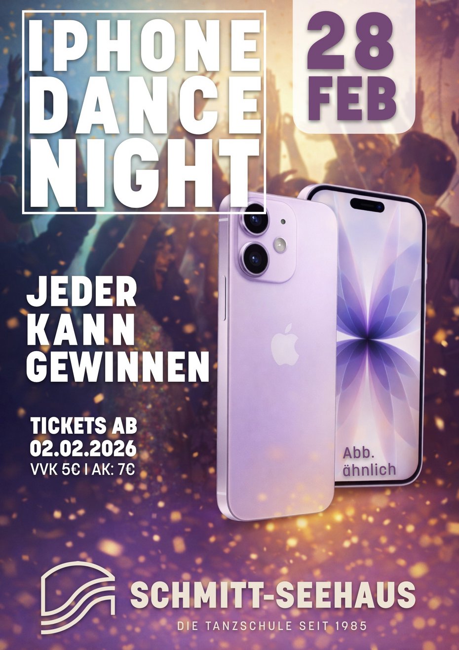 Das ist einmalig in der Tanzschulwelt! Du kannst das aktuelle IPhone 17 gewinnen. Du musst "nur" dabei sein. Jedes Mal wenn du ein weiteres Mal pro Woche den Unterricht besucht, oder zusätzlich als Gasttänzer /-in aushilft erhälst du automatisch ein Los.